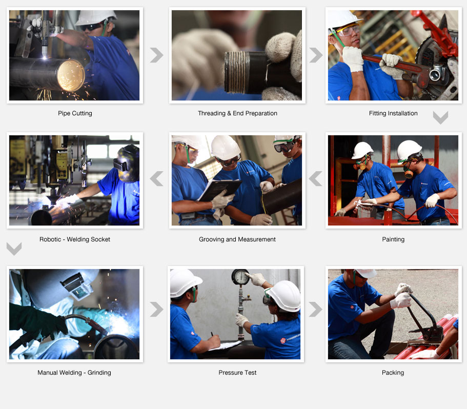 We pre-fabricate our project pipes at our factory located in Selangor, Malaysia to ensure precision and quality fabrication prior to installation. We have rigorous standards to ensure that the process of cutting, threading, fitting, welding and painting processes are properly finished at our factory. Each length of pipe is then pressure tested up to 200 psi before they are labelled, packed and delivered to site.